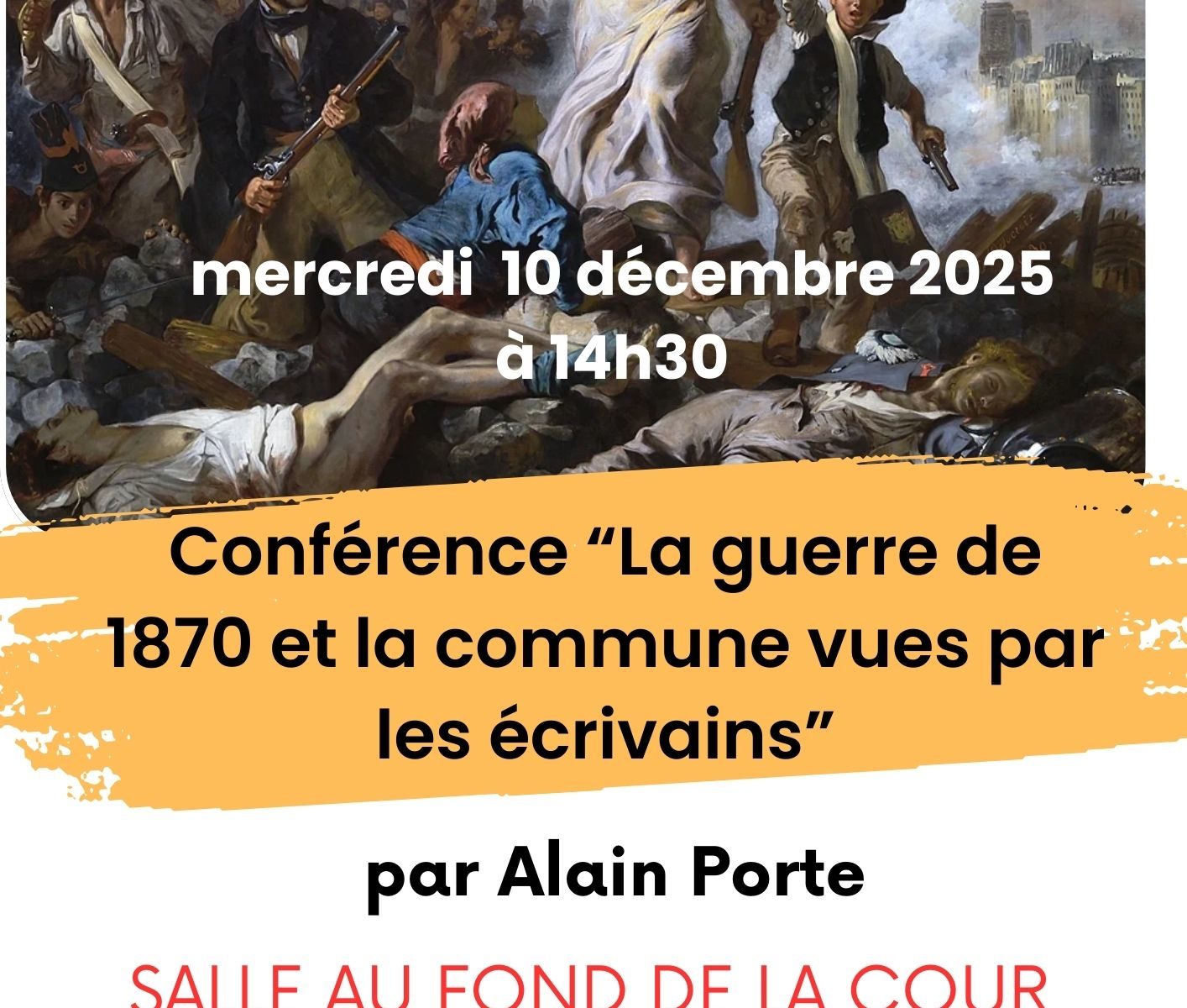 Publié le 21 juillet 202421 novembre 2025CONFERENCE « La guerre de 1870 et la commune vues par les écrivains » Echappez-vous avec l’Amicale laïque Programme en pièce jointe