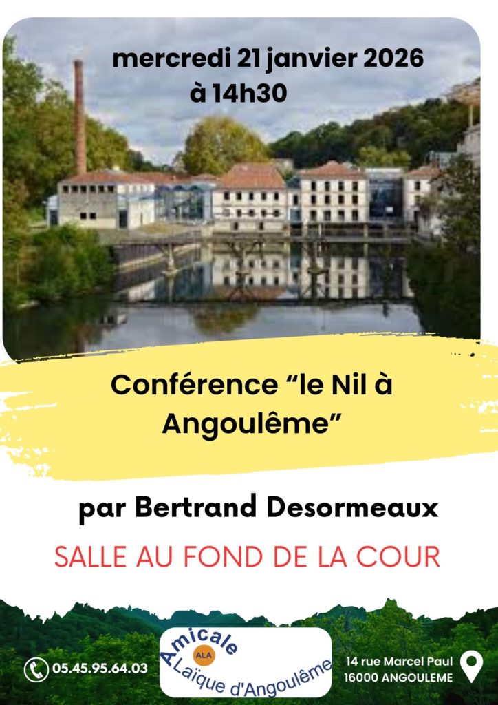Publié le 21 juillet 202423 décembre 2025CONFERENCE « Le Nil à Angoulême » Echappez-vous avec l’Amicale laïque Programme en pièce jointe
