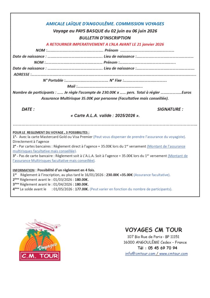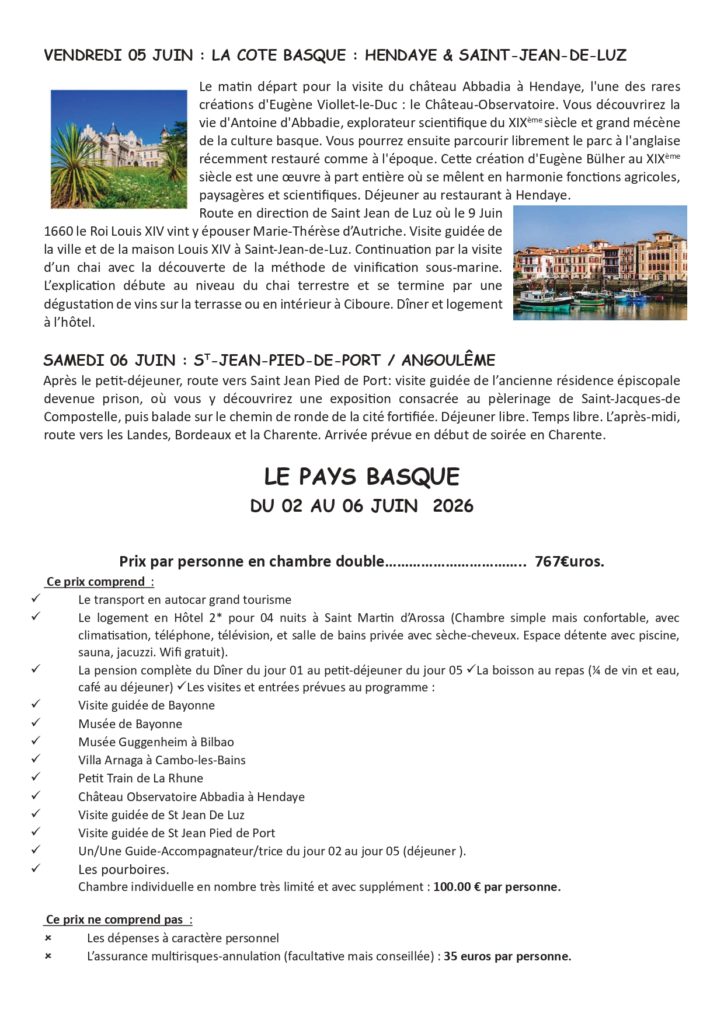 Publié le 20 août 202312 janvier 2026 par NTConseilVoyage au PAYS BASQUE du 02 au 06 juin 2026 (réservation avant le 20 janvier)